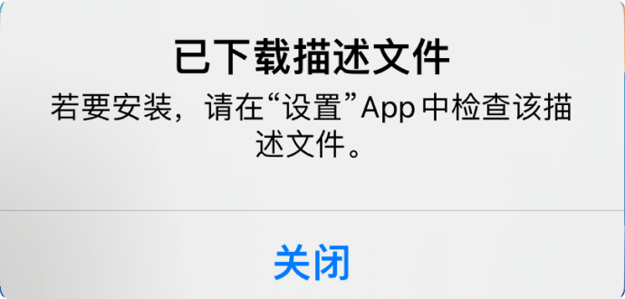 允许安装未知的来源,点击“允许”下载安装必要的描述文件